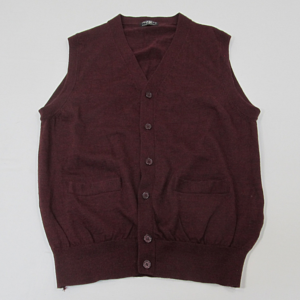 - TOKO LIMY製 前割れ ニットベスト 毛100% LLサイズ エンジ系