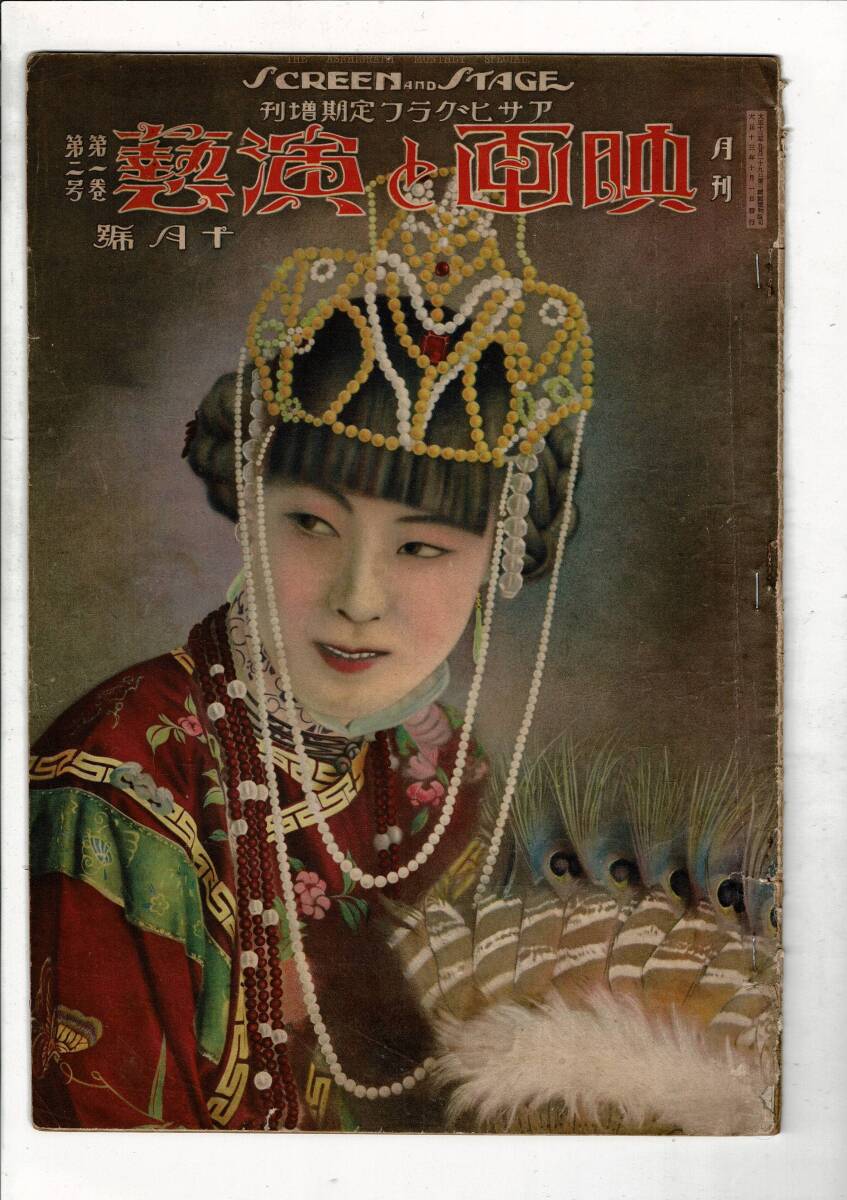 > *「映画と演芸 第1巻第2号 アサヒグラフ定期増刊」朝日新聞社 38p 37cm 状態並 大13年 針の劣化をホチキスで補強 ヤケ RX11-225UT31