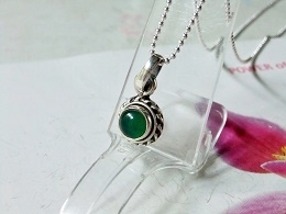 - 丸型の落ち着いたデザインのグリーンジェイドのシルバーネックレス