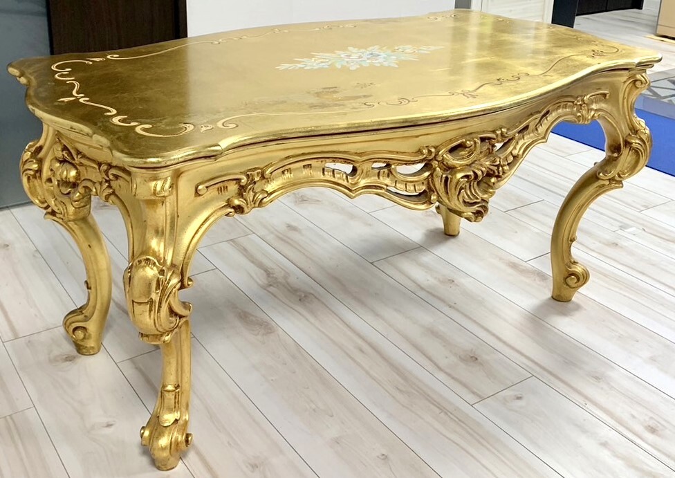 - 最終値下げ★希少★天板ガラス付きSILIK(シリック) ハンドペイント・ゴールド・センターテーブル・ロココ調