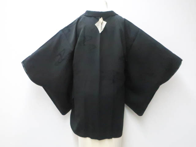 - 《古美術京松》【着物】黒羽織 一つ紋 流水地紋 羽織り紐別売り 身丈約78cm 裄丈約63cm r7z04-241