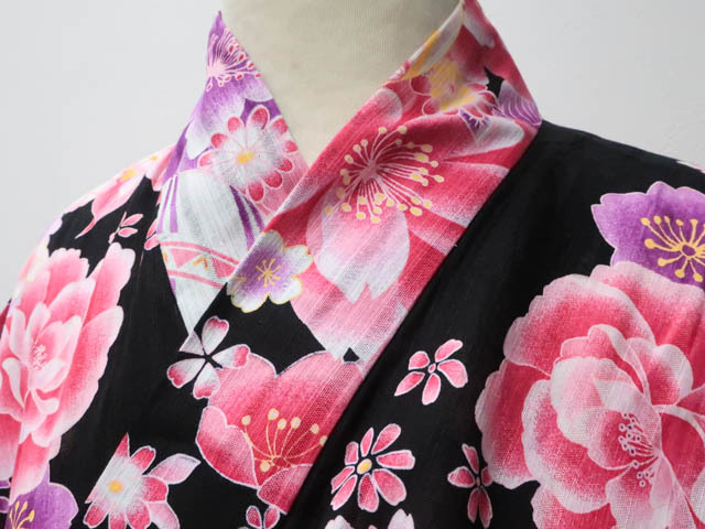 - 《古美術京松》【着物】浴衣 鞠に花文 身丈約167.5cm 裄丈約66cm r7z04-276
