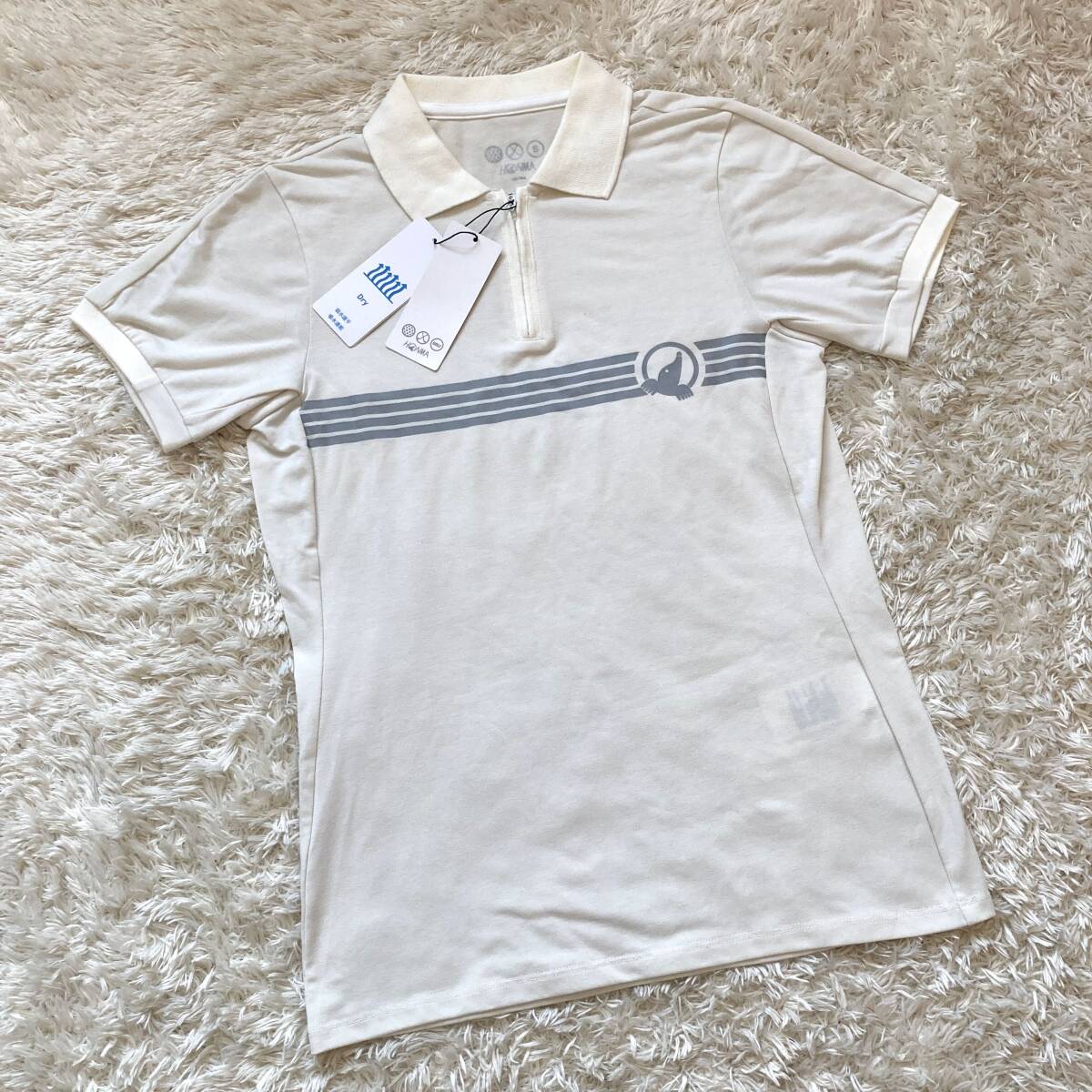 > 新品 未使用 本間ゴルフ ホンマゴルフ ハーフジップ 半袖 ポロシャツ 白 アイボリー レディースS ゴルフ 春夏 グレー ジップアップ シャツ