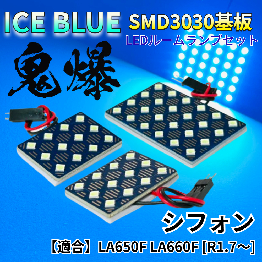 > 【アイスブルー】シフォン LA650F LA660F [R1.7~] 鬼爆基板 3030SMD LED ルームランプ セット 車内灯 室内灯 パーツ アクセサリ