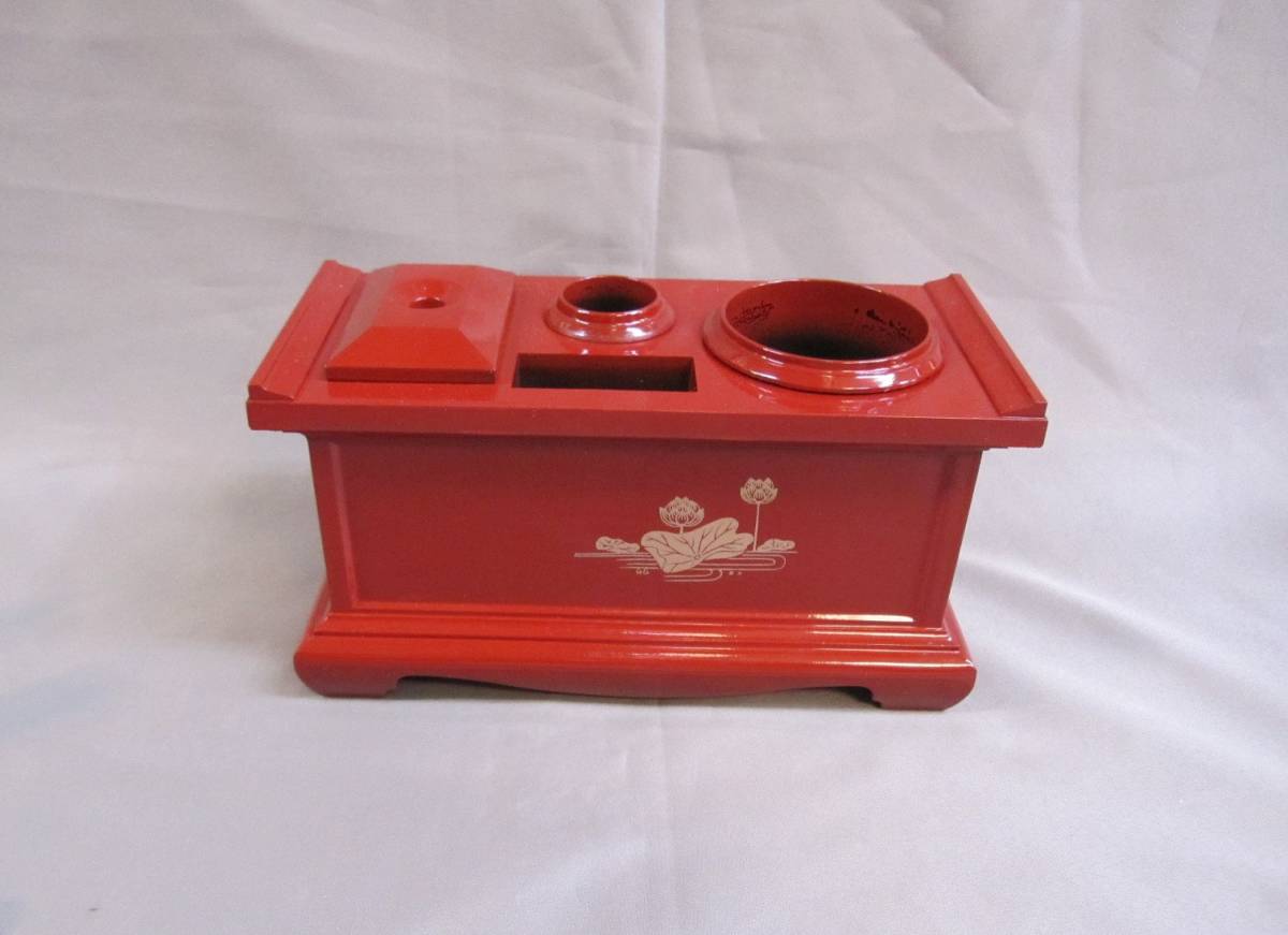 - サンメニー 1型 4点セット 朱 蓮 アウトレット 線香入れ ローソク入れ マッチ入れ マッチ消し
