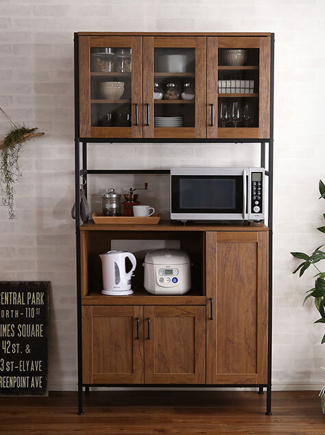 - 食器棚 キッチンボード 収納 食器棚レンジボード カウンター レンジ台 ウォールナット色