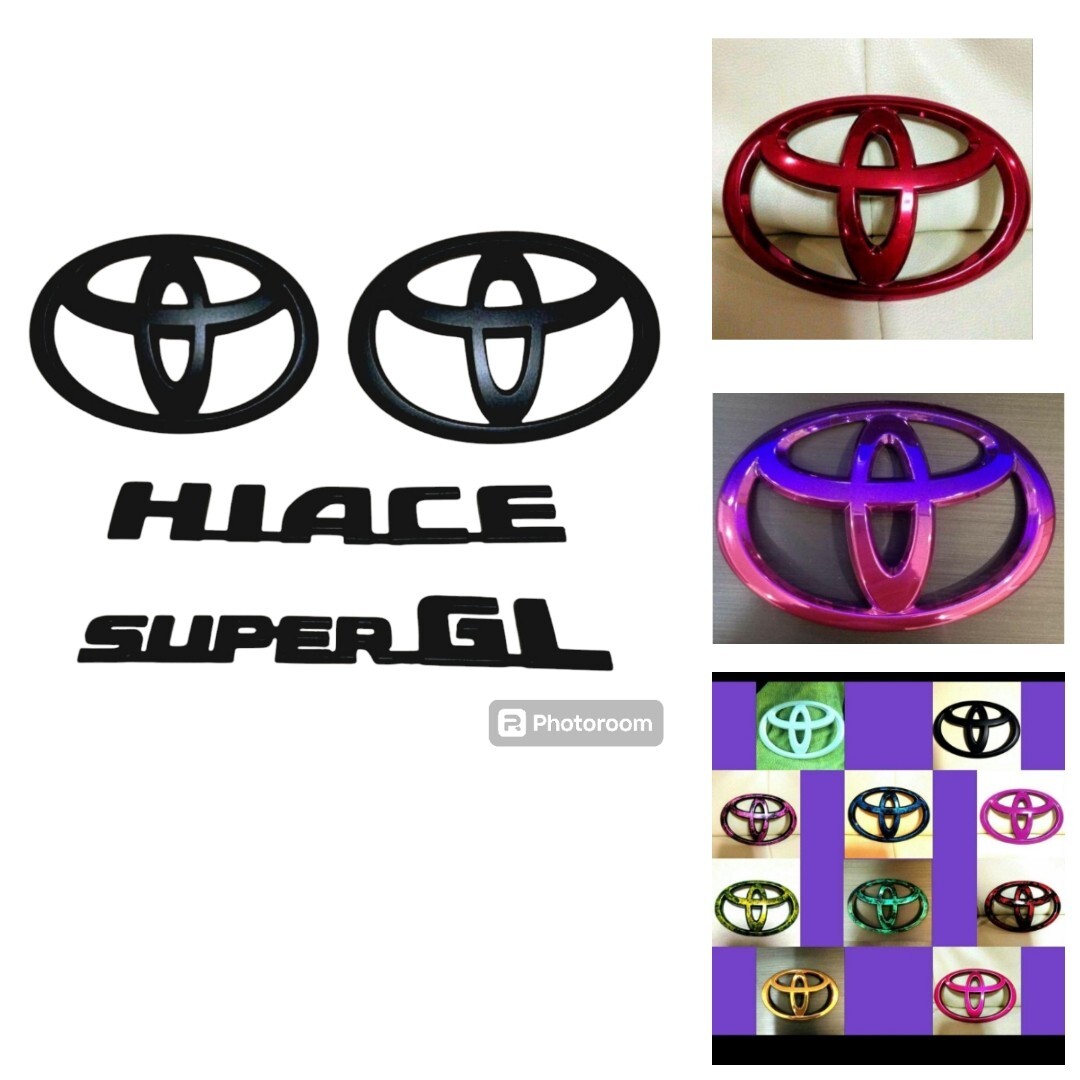 - トヨタ 200系、ハイエースエンブレム、マッドブラック フルセット、カラーバリエーション多数!