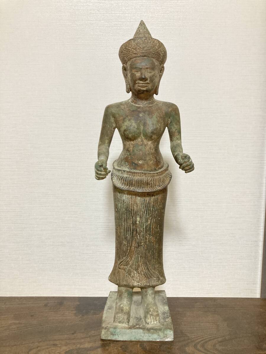 - 【家船】クメール青銅女身立像 バイヨン様式 13世紀頃 検)アンコールワット送料無料
