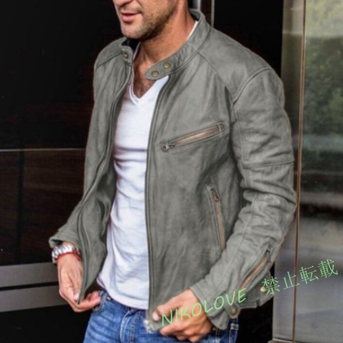 - 新品 レザージャケット メンズ ライダースジャケット 革ジャンバイクジャケット ジャンパー ブルゾン 皮革ジャケット S~5XL グレー