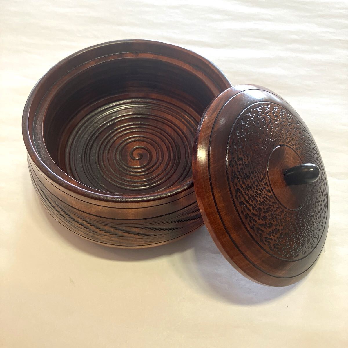 - 菓子器 天然木 漆 ふき 蓋付き 未使用保管品