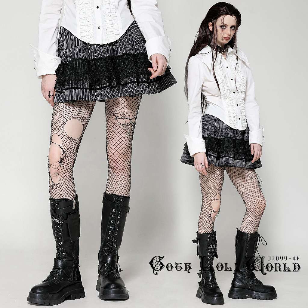 - 即納 KW366-M ゴシックファッション ストライプ柄レース ミニスカート ゴシック ゴスロリ ロリータ ロリィタ ビジュアル系 地雷系
