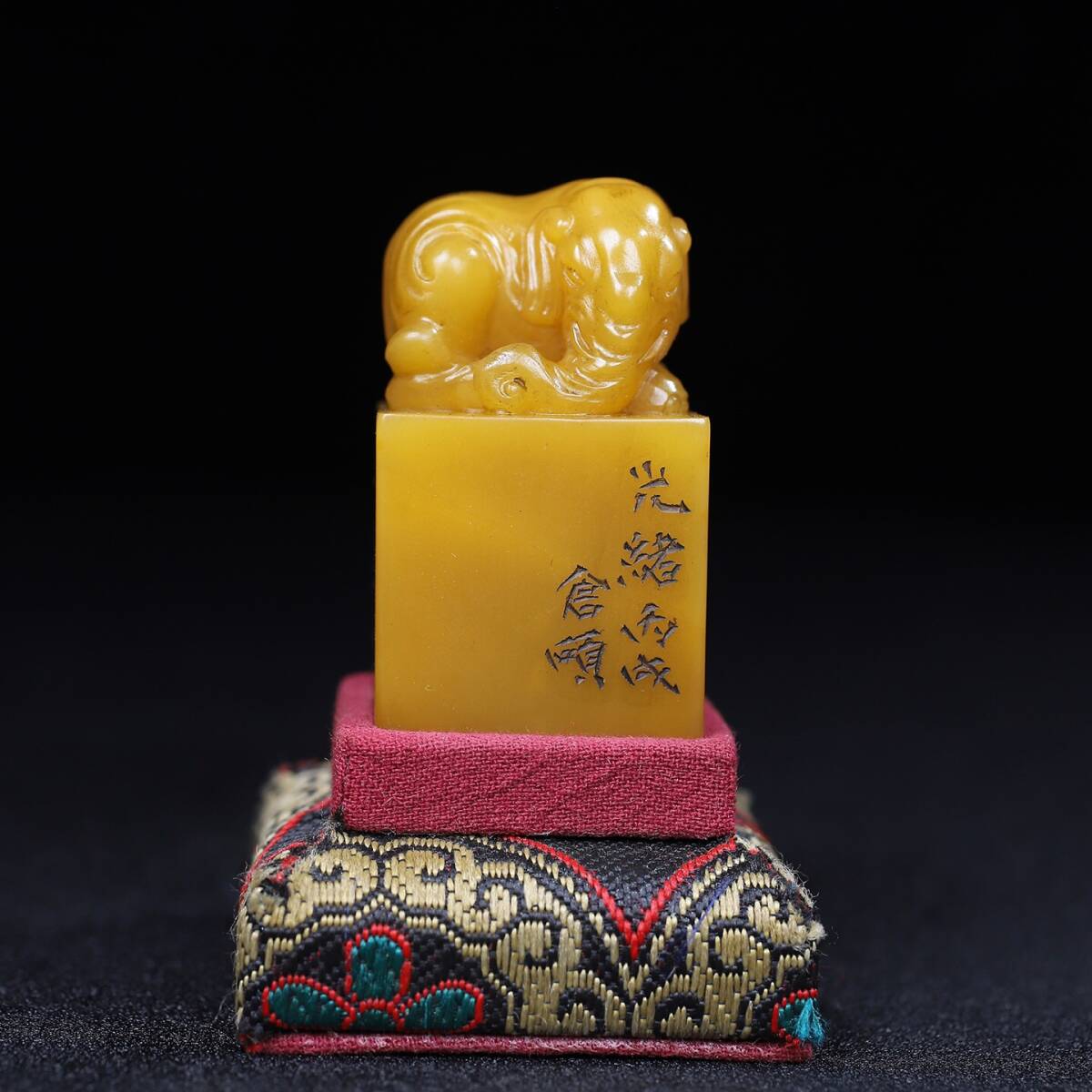- ▽鴻▽ 寿山石 田黄石 細密彫 吉象印章 箱付 置物 古賞物 中国古玩 中国古美術
