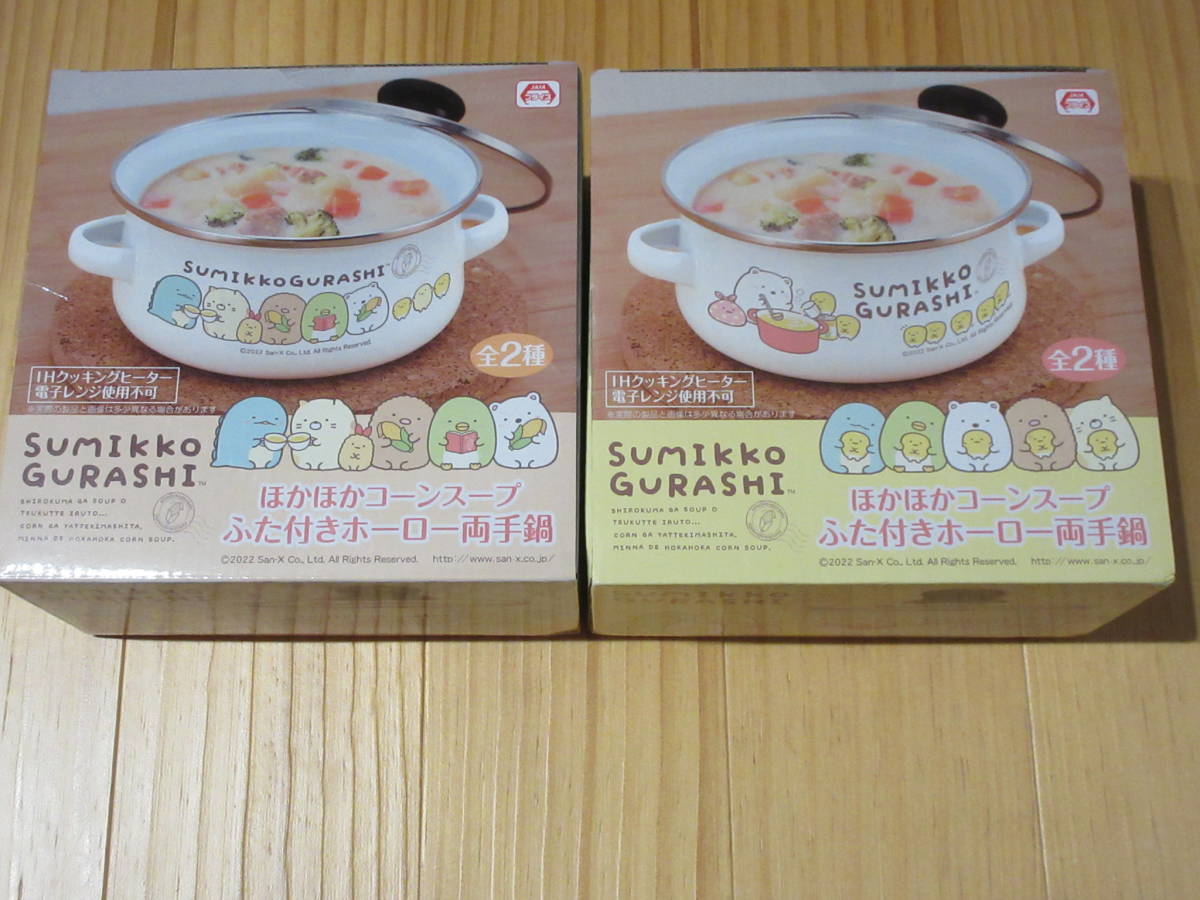 - ◆すみっコぐらし ほかほかコーンスープ ふた付き ホーロー両手鍋 選択可 セット可 調理器具 鍋 台所用品 満水容量1100ml◇◆新品未開封