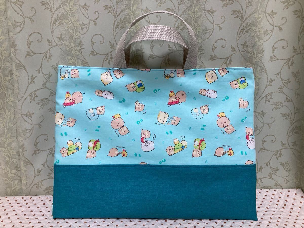 - レッスンバッグ 絵本袋 手提げ 保育園 小学校 ハンドメイド すみっコぐらし かわうそ 接着芯 しっかり マチなし 入園 入学