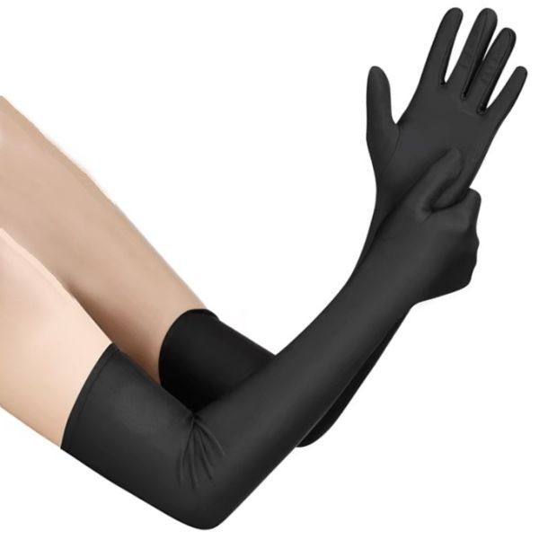 - スパンデックス日焼け防止ロング手袋 パーティーナイトクラブ結婚式のパフォーマンス黒手袋 高弾性 衛生的 ★鄭8[丨1