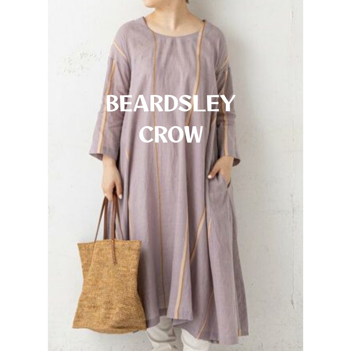 > BEARDSLEY*ビアズリー*CROW*ワンピース*綿100%*手洗い可*淡いパープル*ストライプ*ナチュラル*27500円*インド製