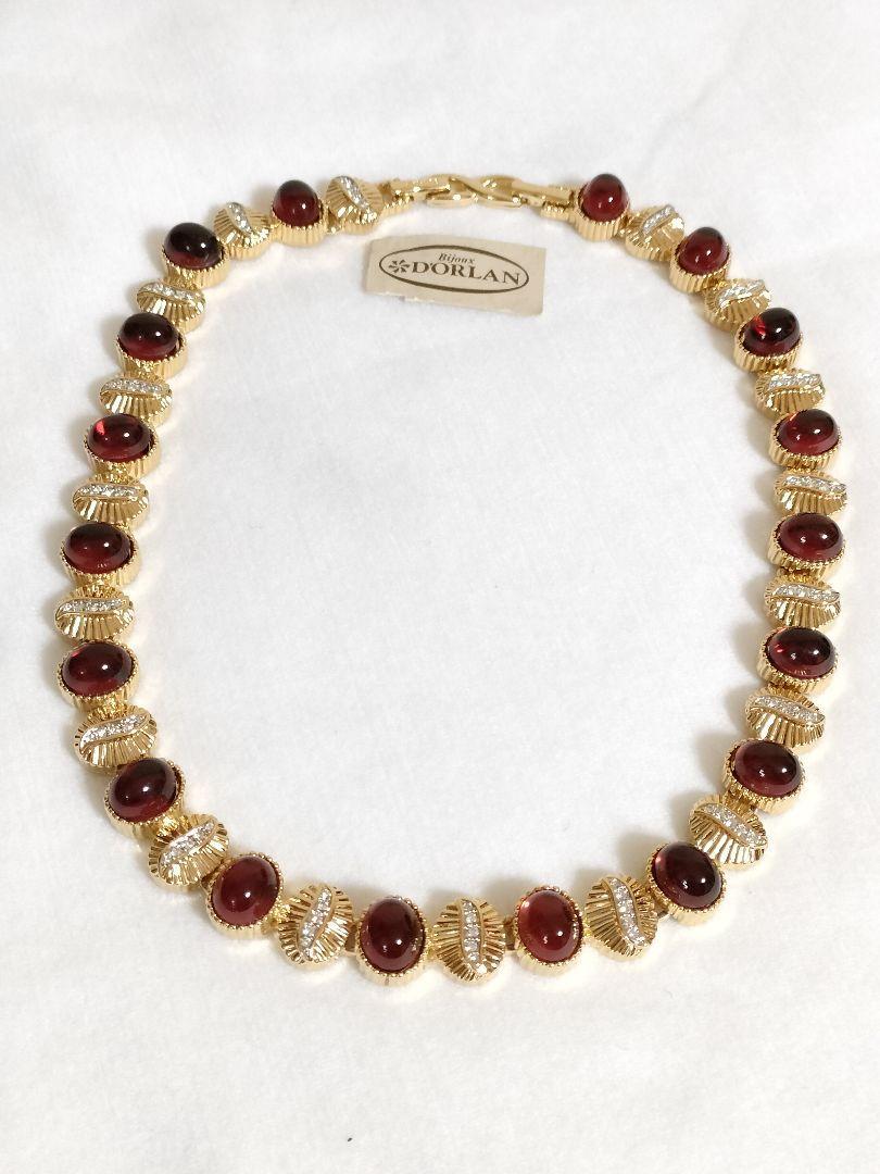 - 新品タグ付き D'ORLAN ドーラン ネックレス ゴールドカラー レッド ストーン 大ぶり チョーカー