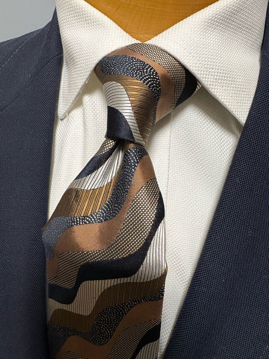 - 【美品】KEIOヴィンテージネクタイ 大剣約9cm 日本製高級シルク 幾何学ストライプ 2504