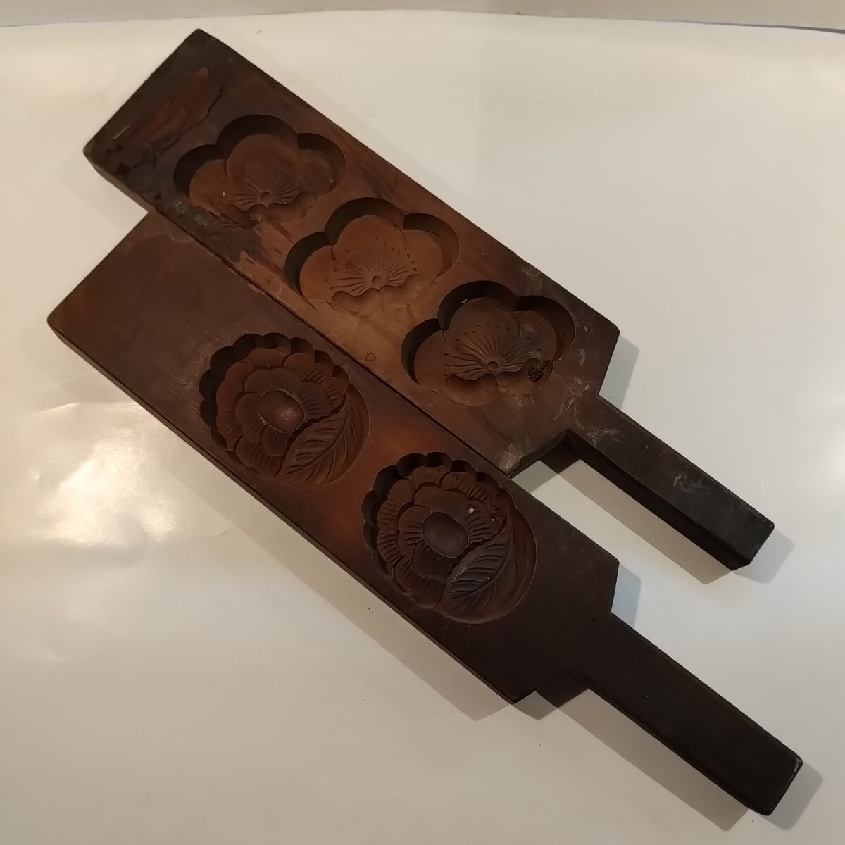 - 木製菓子型 木彫 当時物 古道具 和菓子 レトロ a21