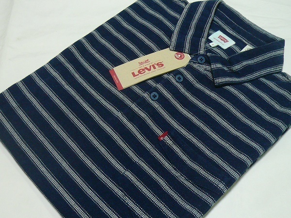- 新品LEVISリーバイス半袖サンセットポロシャツM(S)藍染めボーダー\7700
