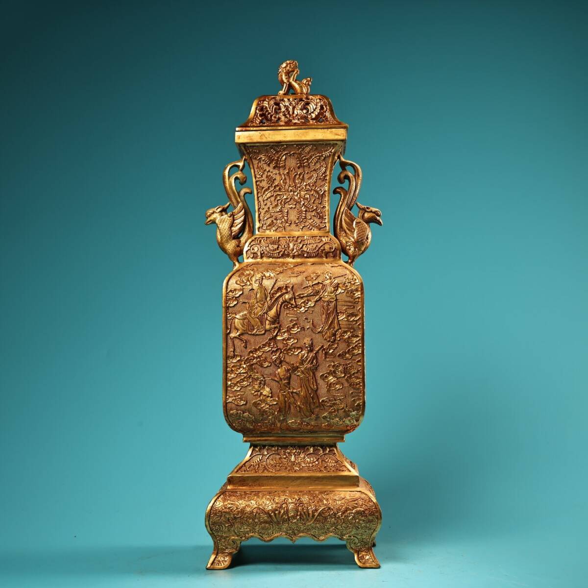 - ▽鴻▽ 銅製 塗金 八仙紋 花瓶 置物 古賞物 中国古玩 中国古美術