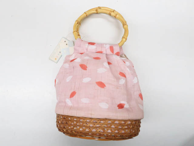 - 《古美術京松》【着物】和装小物 竹籠バッグ 桜文 r7w04-1558