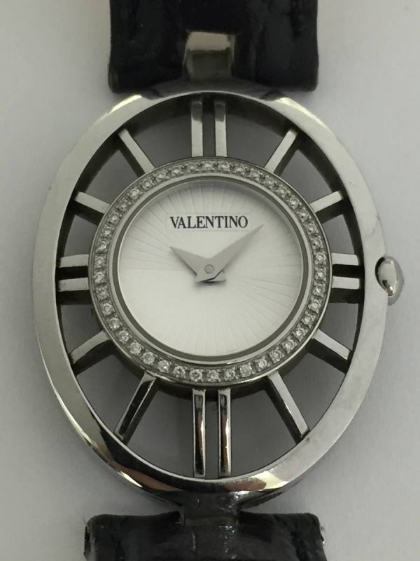 > 美品!VALENTINO ヴァレンティノ VANITY ヴァニティ V42 ダイヤモンド ベゼルダイヤ SS シルバー 革ベルト クォーツ レディース腕時計
