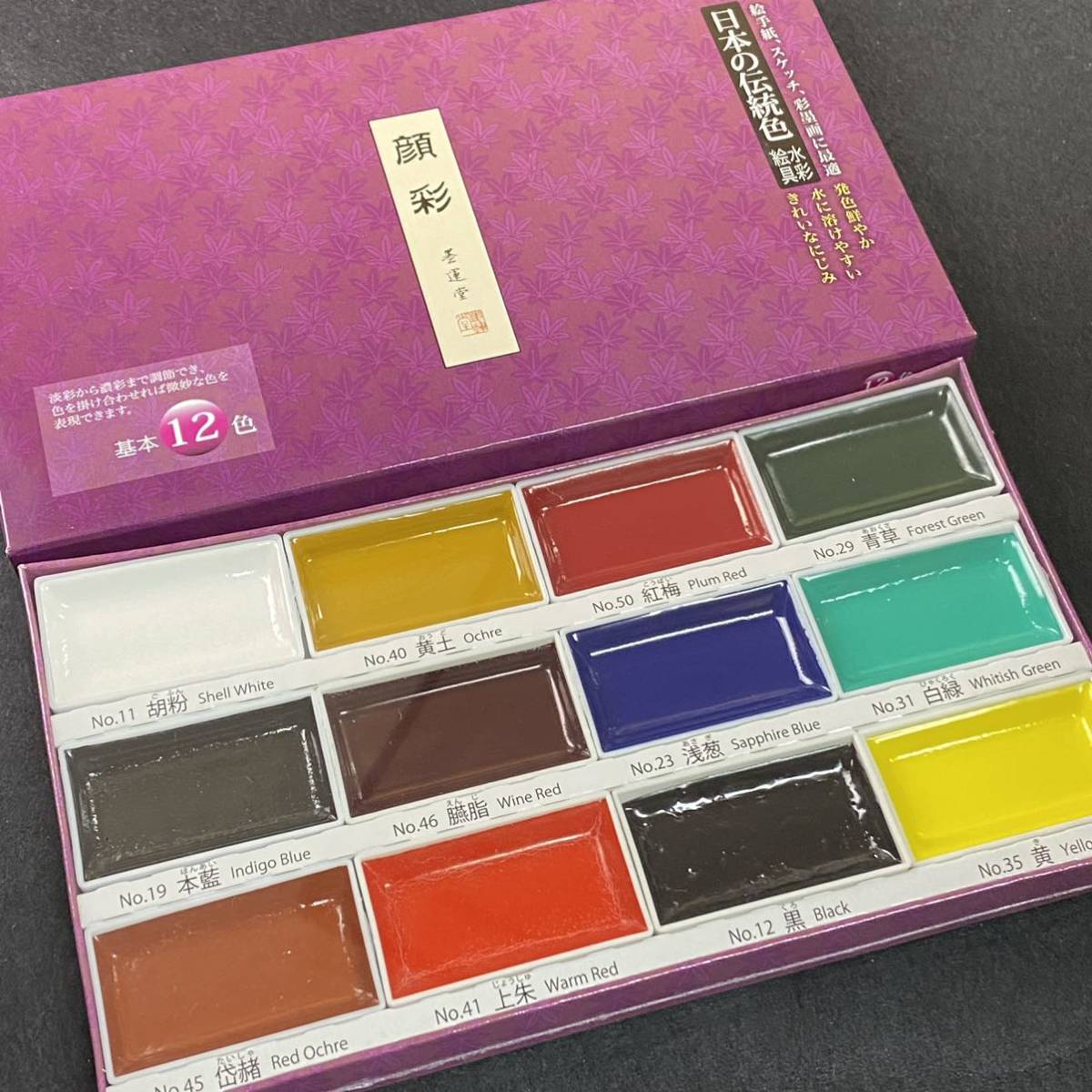 - 墨運堂 顔彩 12色セット 15504 水墨画 水彩画 顔料 絵手紙 塗り絵 画材 絵の具 送料無料絵てがみ 日本画 絵具 顔彩 新品未使用 送料無料