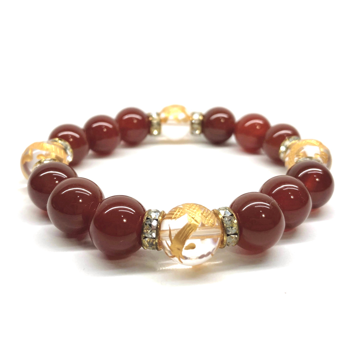 - 四神獣金彫水晶×赤瑪瑙 12mm パワーストーン ブレスレット天然石 青龍 白虎 玄武 朱雀 運気上昇 お守り 金運 健康運 四神獸 四神相応 G