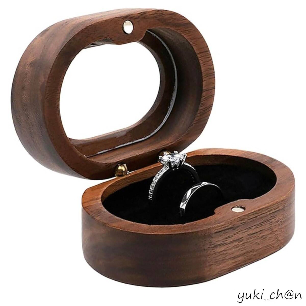 - リングケース 指輪ケース 指輪ボックス ジュエリーボックス ペアリング2個収納 スクエア型 クリア窓付き 木製 ブラック 結婚