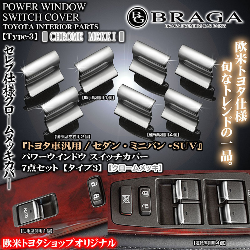 > 【タイプ3】レクサス車用/40系LS/190系GS/20系IS [クロームメッキ・7点セット]パワーウインドウ ボタン/スイッチカバー欧米仕様