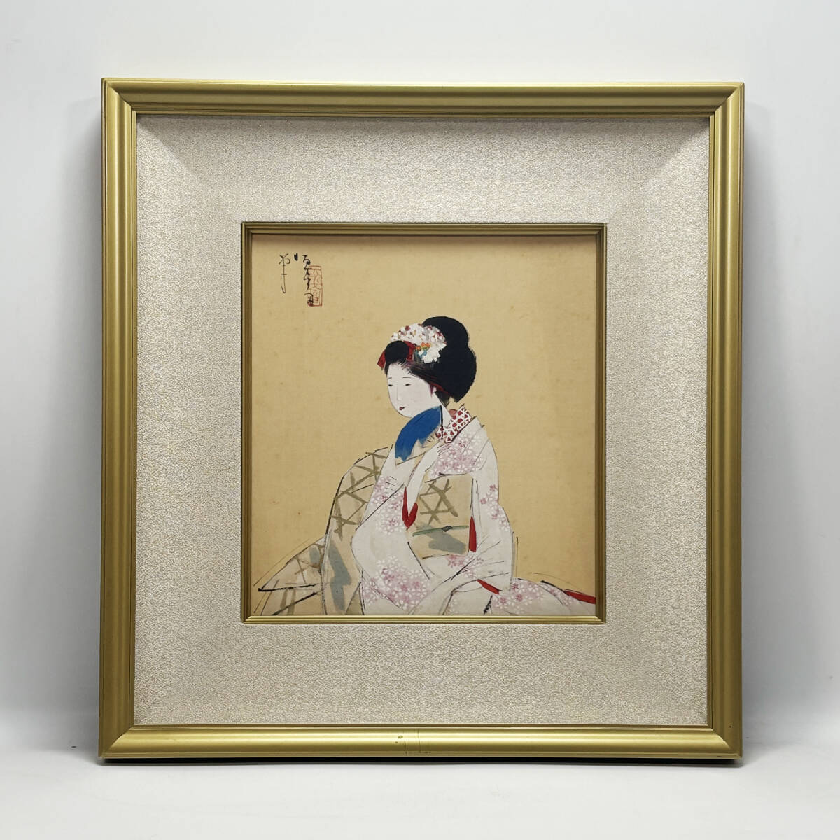 - 【真作】■ 北野恒富 ■ 「舞妓」色紙/額装 250416002