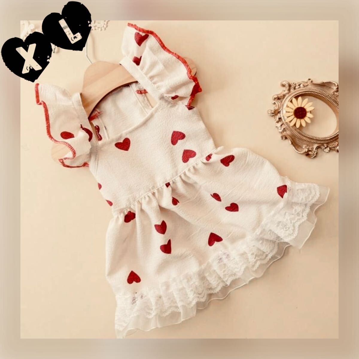 - XL レッドハート ワンピース 犬服 猫服 犬の服 ペット服 ペット用品 ドッグウェア スカート