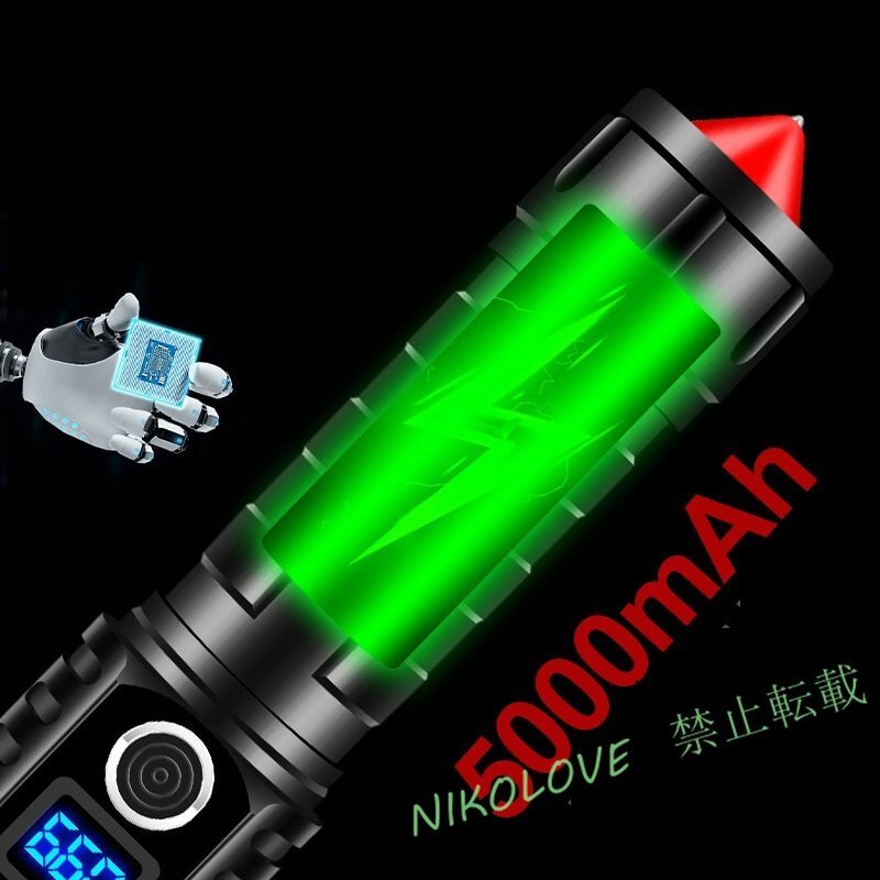 - 超高輝度ルーメン 懐中電灯 フラッシュライト 大液晶画面 ledライト デジタル残量表示 Type-C USB充電式 超長遠射 防水防災 登山 夜釣り