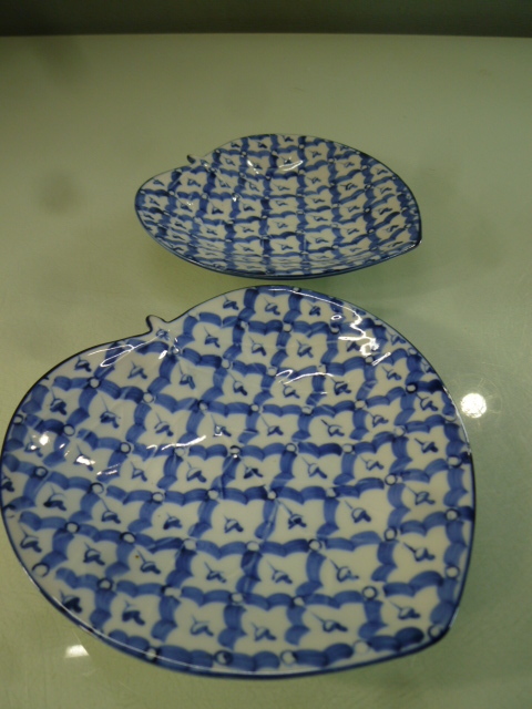 - タイ式 青白陶器 ハート イチゴ 皿 2個セット パイナップル柄皿 新品購入個人保管品 美品中古
