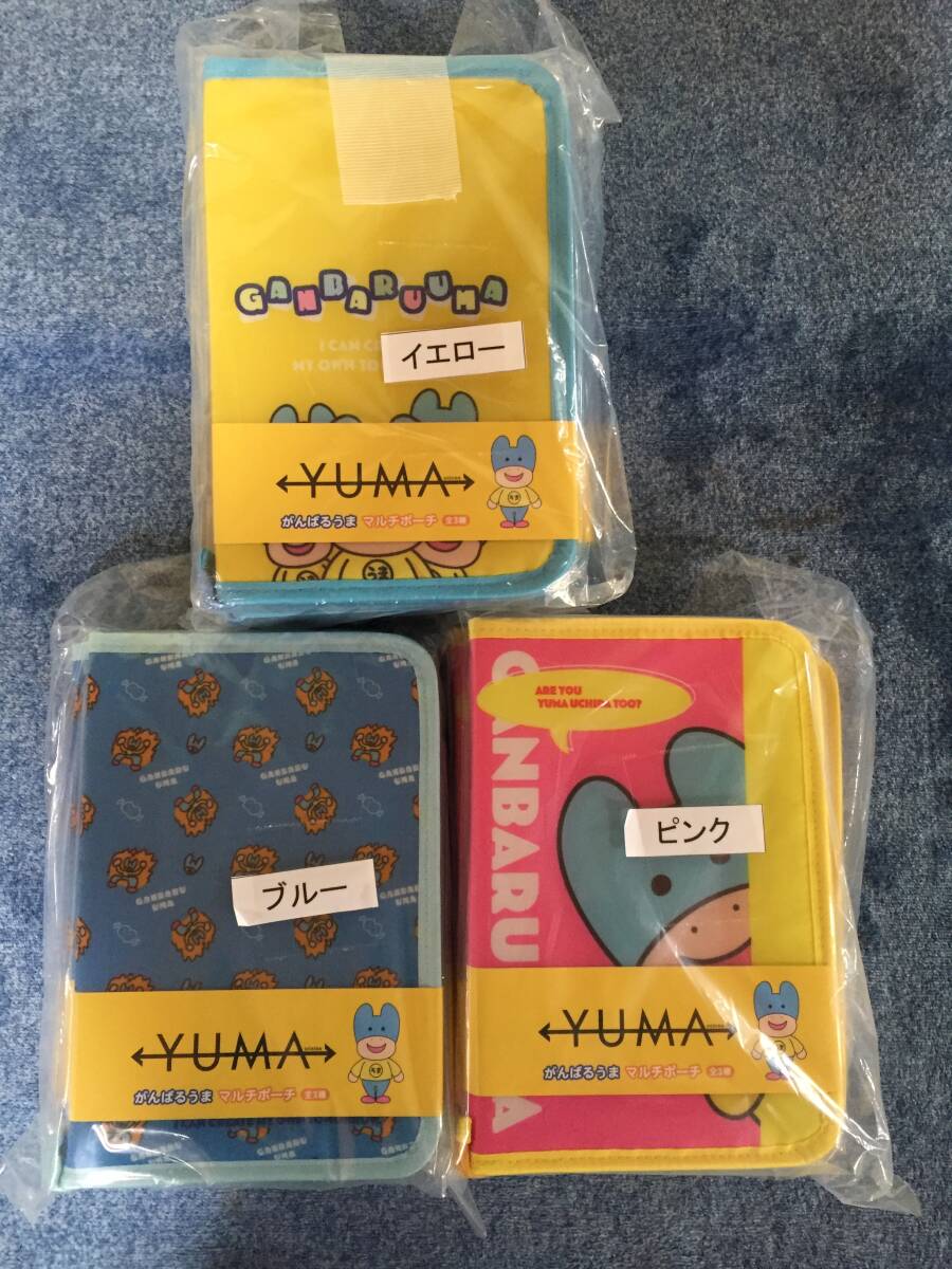 - SA 未開封 フクヤ がんばるうま マルチポーチ 全3種 13個セット イエロー ブルー ピンク