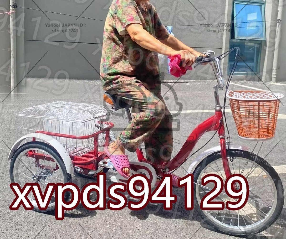 - 特売★三輪自転車 折りたたみ 高齢者用 高さ調節可能 組立品 ロータイプ 車輪ロック 前輪20インチ・後輪18インチ 大容量 後カゴ付 収納便利