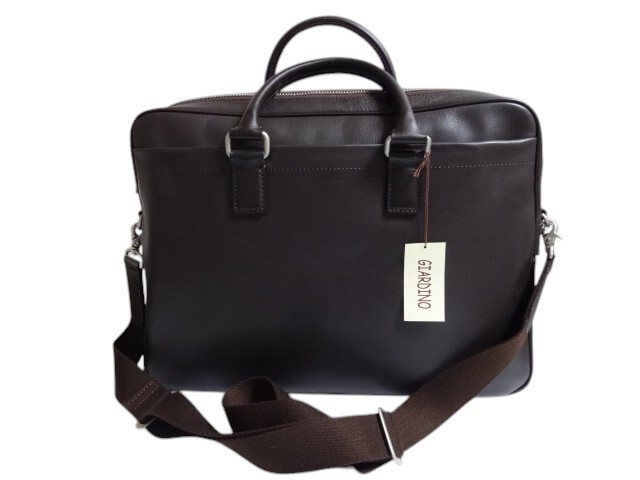 - 新品未使用 GIARDINO ITALY ジャルディーノ 牛革2WAY ビジネスバッグ ショルダーバッグ 定価3.7万 ブラウン イタリア メンズ レザー