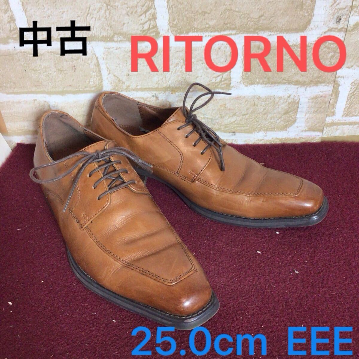 - 【売り切り!送料無料!】A-376 RITORNO!ビジネスシューズ!25.0cmEEE!ブラウン!茶!おしゃれ用!冠婚葬祭!仕事!ビジネス!フォーマル!中古!