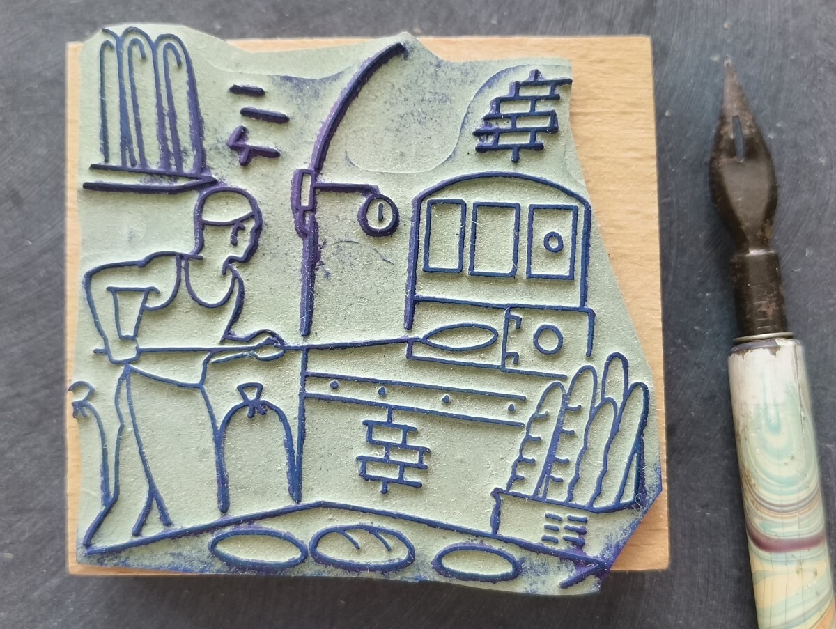 > パン職人 パン屋さん ブーランジェリー 仕事 窯 フランス アンティーク スタンプ ヴィンテージ ハンコ 工房 イラスト 素材 小麦粉 雑貨