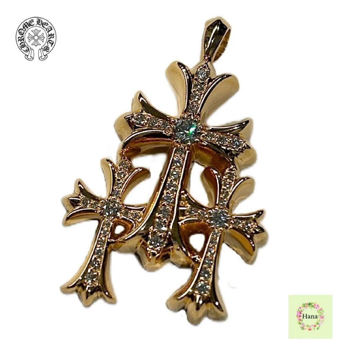 - クロムハーツ 22k PENDANT 3 CH CRS SML GLD DMND PAVE トリプル CHクロス トリプルクロス スモール パヴェダイヤモンド 保証書無修正
