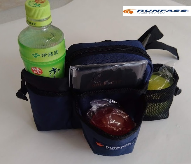 - マレットゴルフボールポーチ ボトル 収納 ウエストポーチ 紺 M-55 送料無料