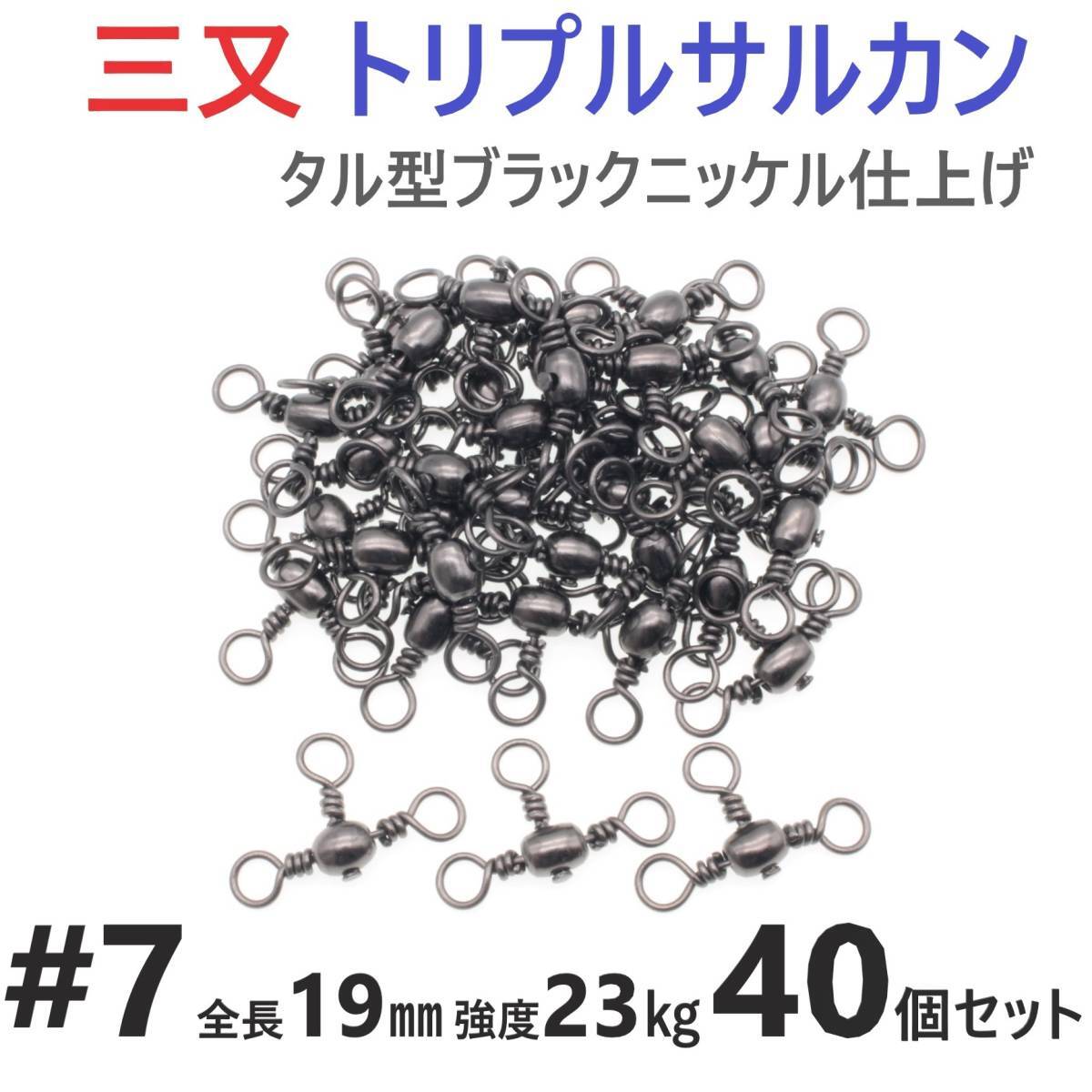 > 【送料150円】三又サルカン トリプルサルカン #7 全長19㎜ 強度23㎏ 40個セット 胴突き仕掛け 捨てオモリ仕掛けに 三つ又 強力ヨリモドシ