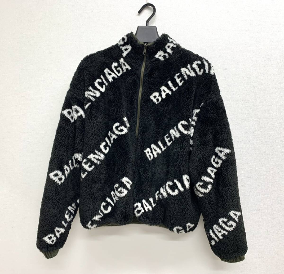 > 安心取引【大黒屋】★BALENCIAGA バレンシアガ 20AW ロゴリバーシブルニットブルゾン ジャケット 625931 T1571 ブラック カーキ★中古美品