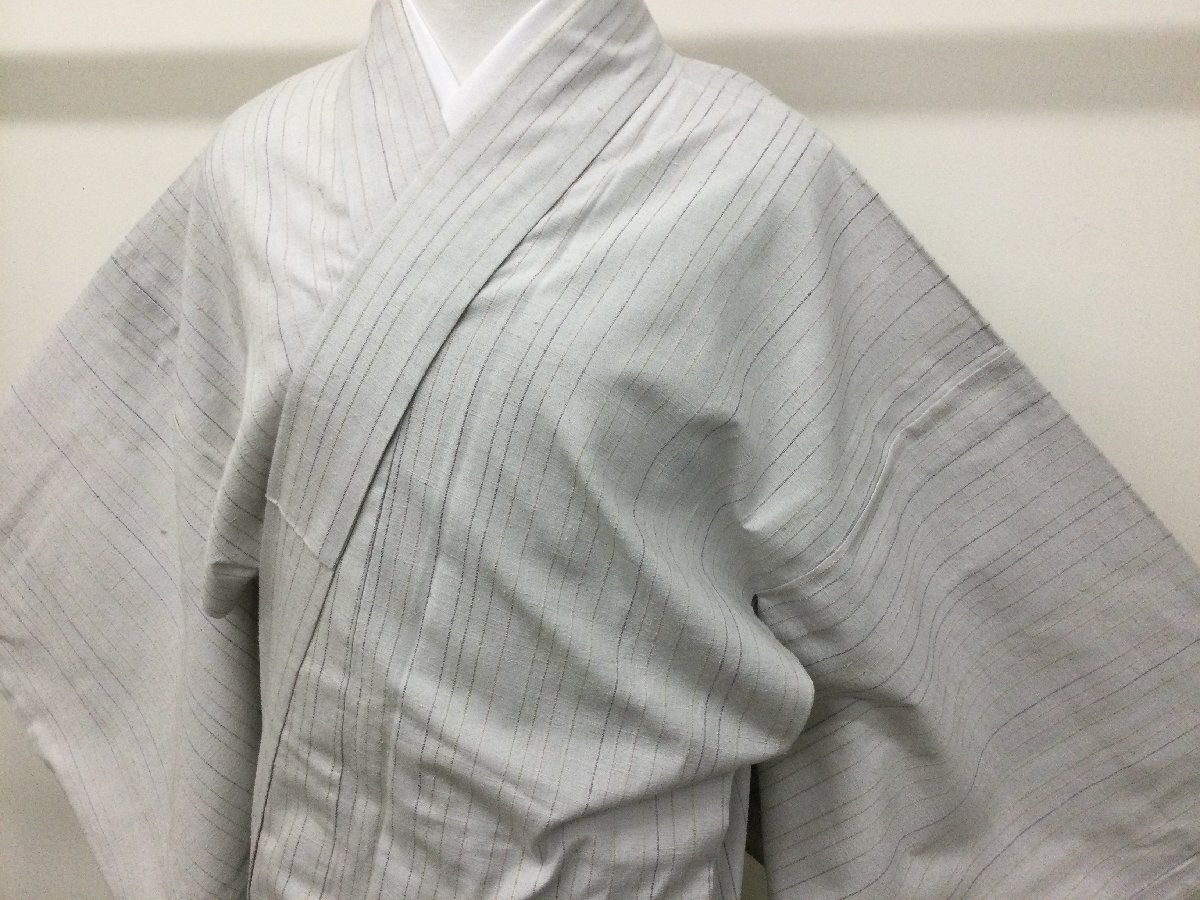 - 〔楽布特選〕P33464 薄グレー地 和モダン 紬 単衣 bc