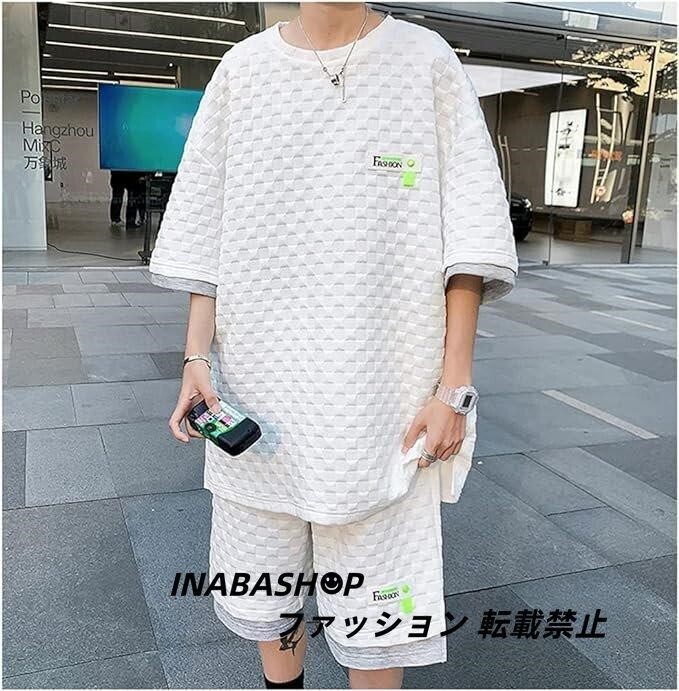 - ビッグシルエット 半袖シャツ 2点セット メンズ 半袖Tシャツ ショートパンツ 上下セット ハーフパンツ セットアップ 五分袖 短パンゆったり