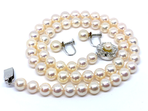 - 【即決】 照り強!! あこや真珠 7.0~7.5㎜ ネックレス イヤリング 2点セット K14WG SVクラスプ 冠婚葬祭 アコヤ パール 和珠 本真珠