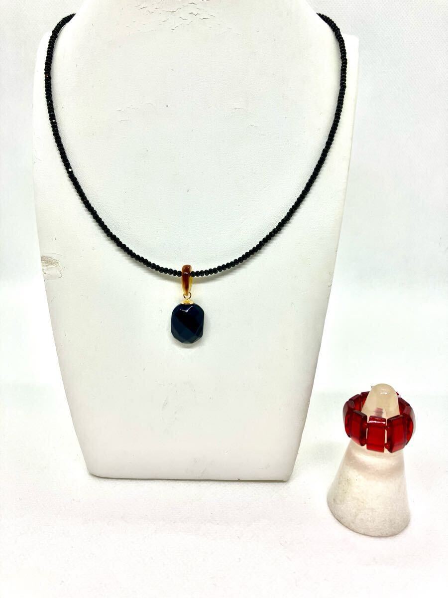 - 【新品】ブルーアンバーネックレス&伸縮リング*リトアニア産*こはく*べっ甲*スピネル*フリーサイズ*レッド琥珀*チェリーアンバー