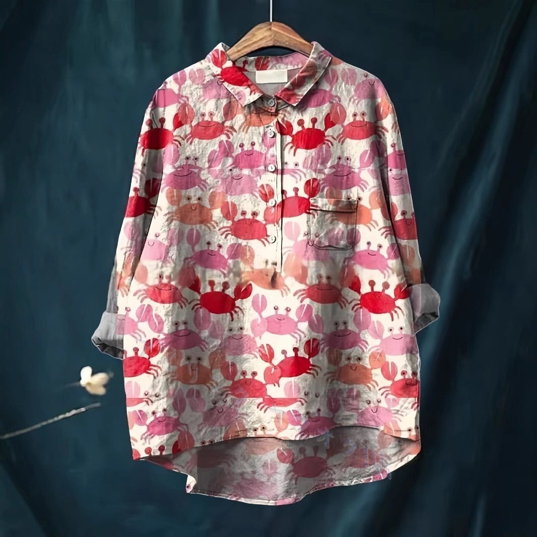 - シャツ ブラウス 着痩せ 綿麻 プリント柄 トップス レディース 長袖 ゆったり 大きいサイズ 体型カバー チュニック 部屋着