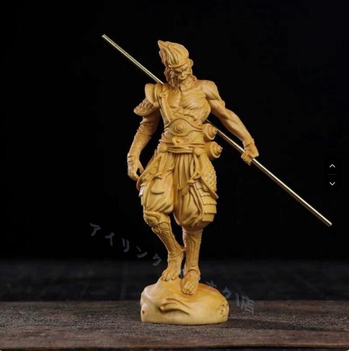 - 置物 フィギュア 孫悟空 如意棒を持つ立ち姿 西遊記 り 天然木